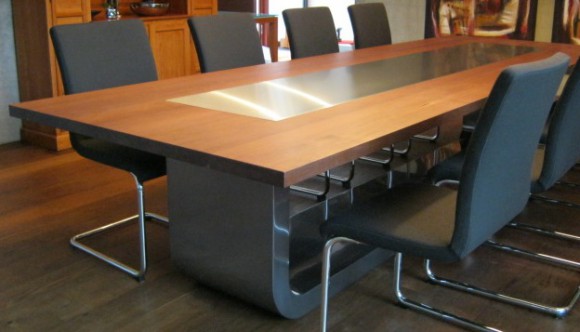 Esszimmertisch in Afrikanischem Nussbaum und Edelstahl